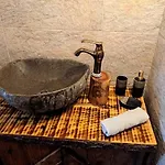Gasten kunnen hun eigen maaltijden bereiden in een ingerichte keuken van de strand villa.